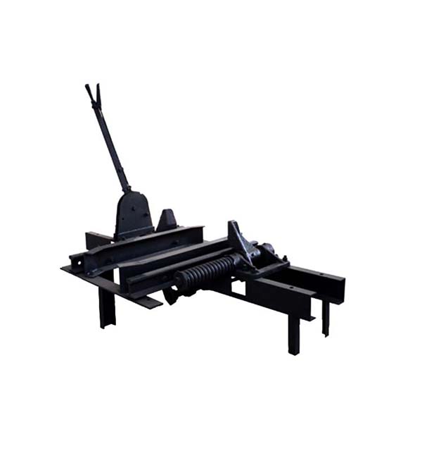 此阻車器為阻輪式阻車器,是礦井車場中將運(yùn)行的礦車停止在某一個(gè)固定點(diǎn)的限位裝置,主要由一對(duì)阻爪和彈簧緩沖裝置等組成。阻爪打開時(shí),礦車可自由通過;阻爪關(guān)閉時(shí)即阻擋住礦車車輪,是礦車停停止前進(jìn)。阻車器可分為單式和復(fù)式兩種。復(fù)式阻車器即兩個(gè)聯(lián)動(dòng)的單式阻車器,相互動(dòng)作閉鎖,除停止礦車外,還起分解礦車的作用。